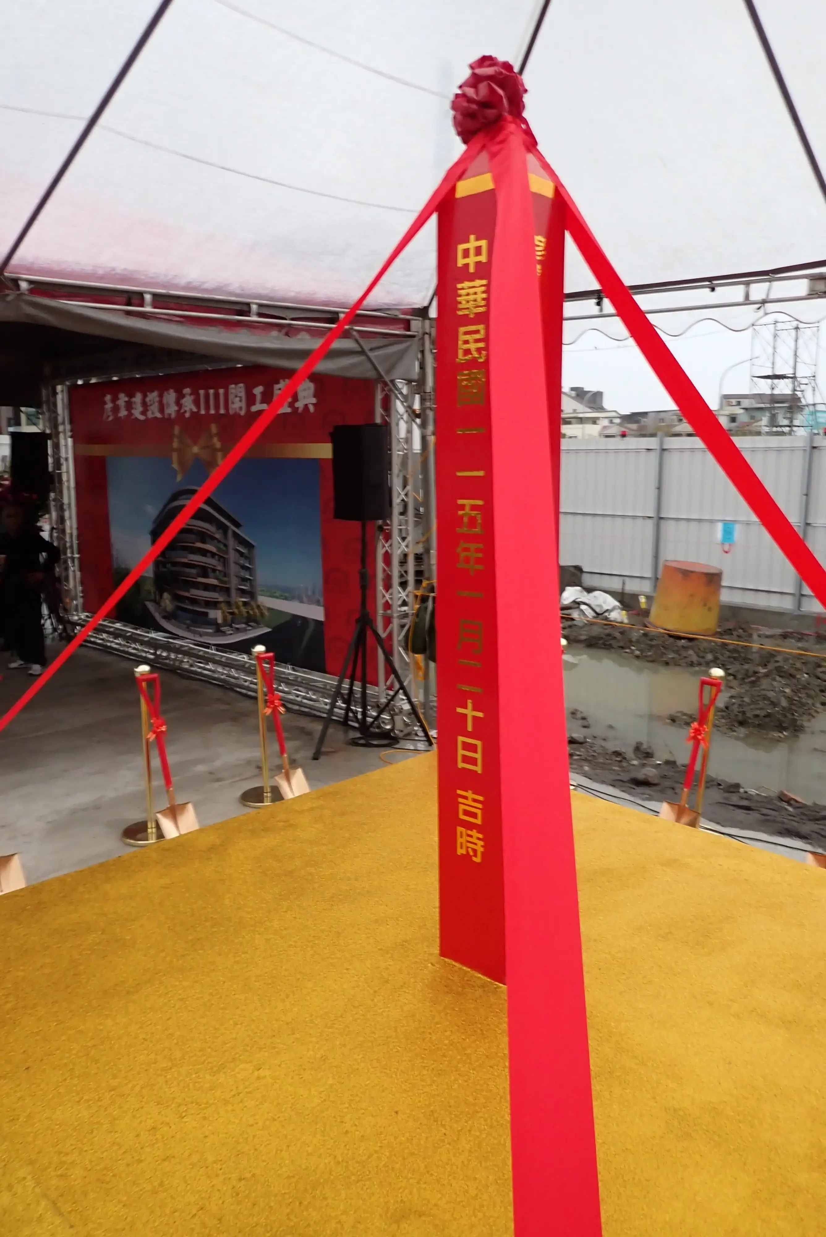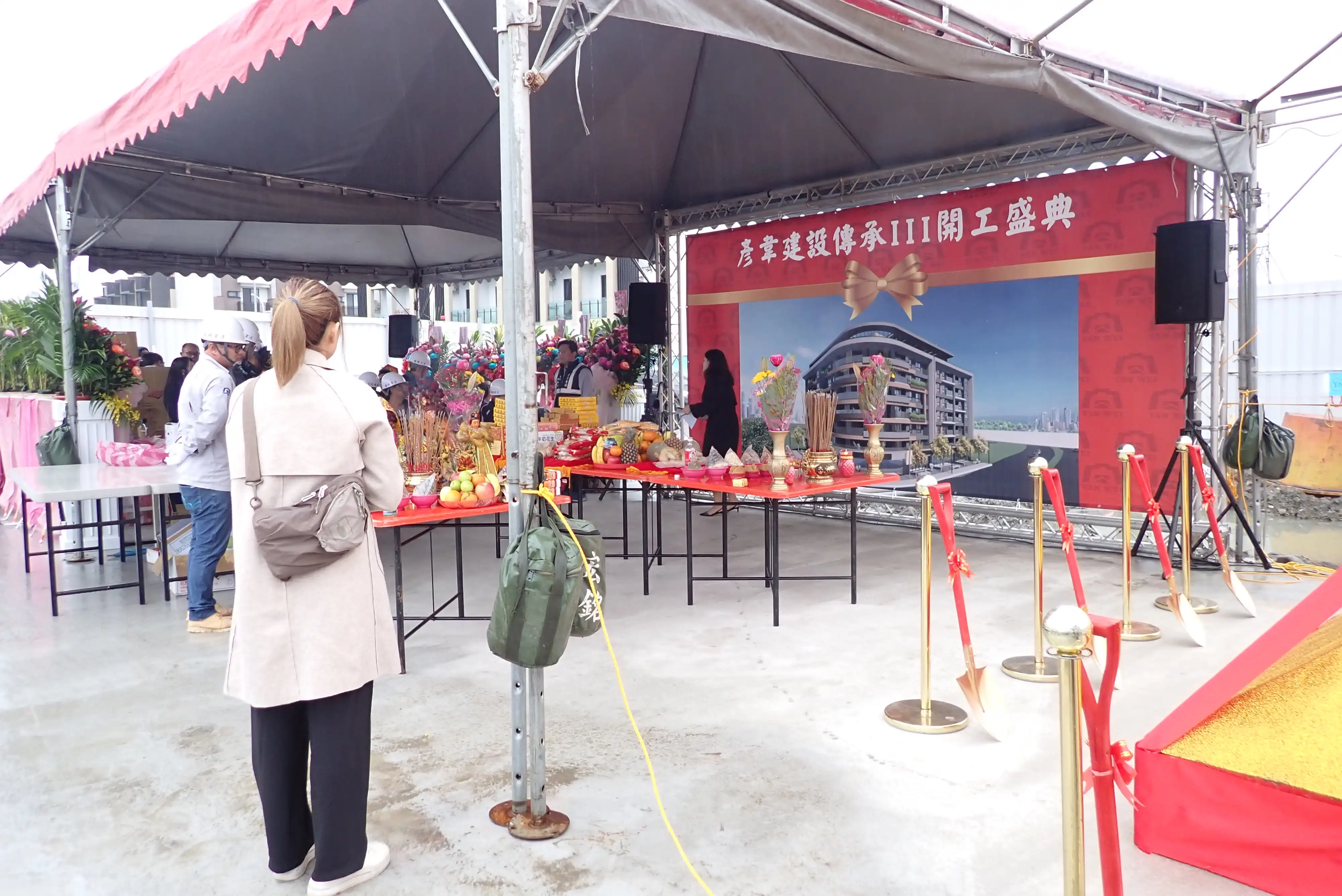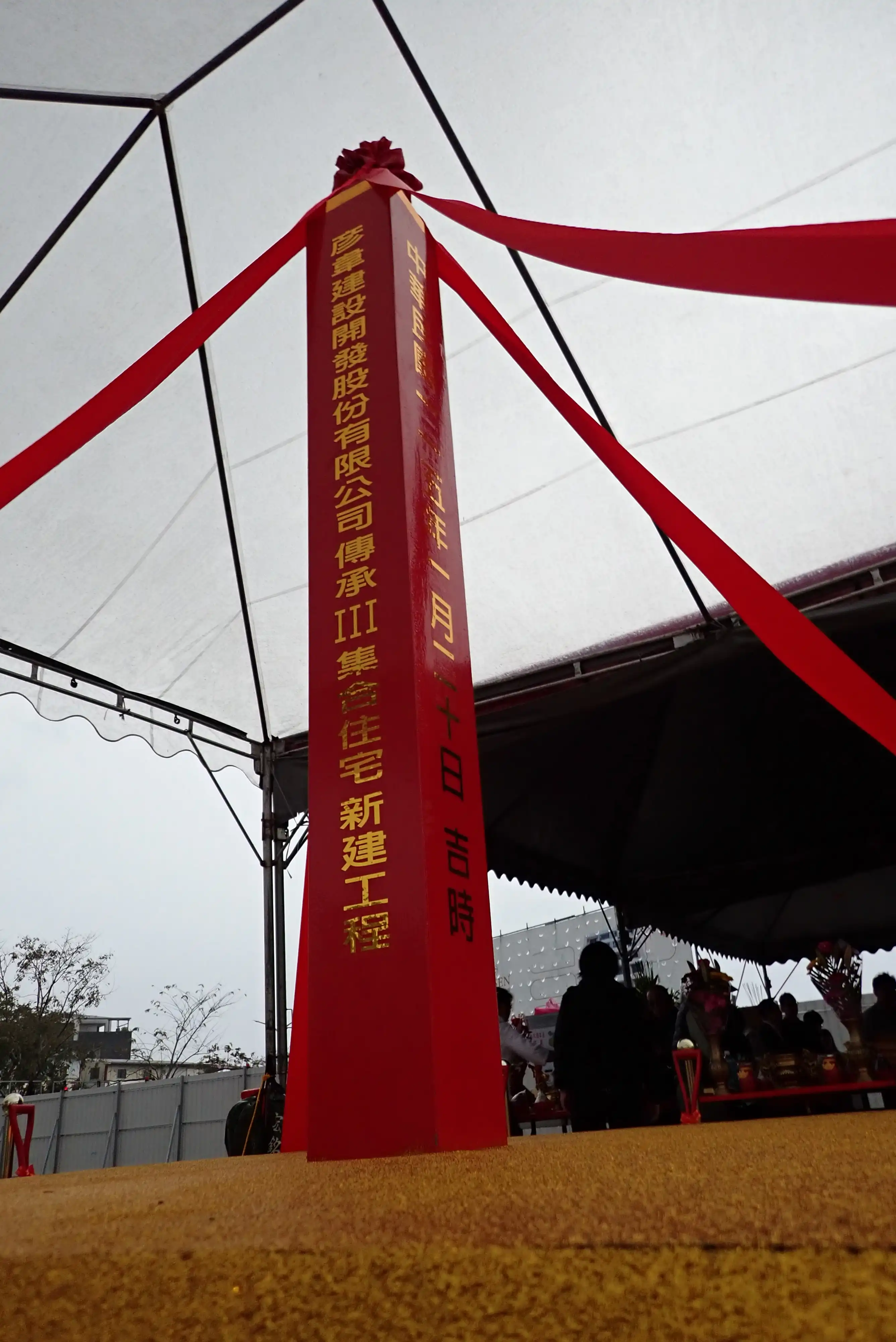 彥韋建設開發股份有限公司董事長游啓東偕同總經理林錦發,於良辰吉時持禮主祭,率領各界貴賓齊聚於宜蘭市新公園段9地號,共襄盛舉「傳承III」集合住宅新建工程開工動土典禮。典禮中,全體貴賓與工程團隊代表共同虔誠祈福,祈求天地護佑,工程人員出入平安、身體健康;工地施工順利、公安無虞;銷售成功、財源廣進,並期盼工程如期圓滿落成。